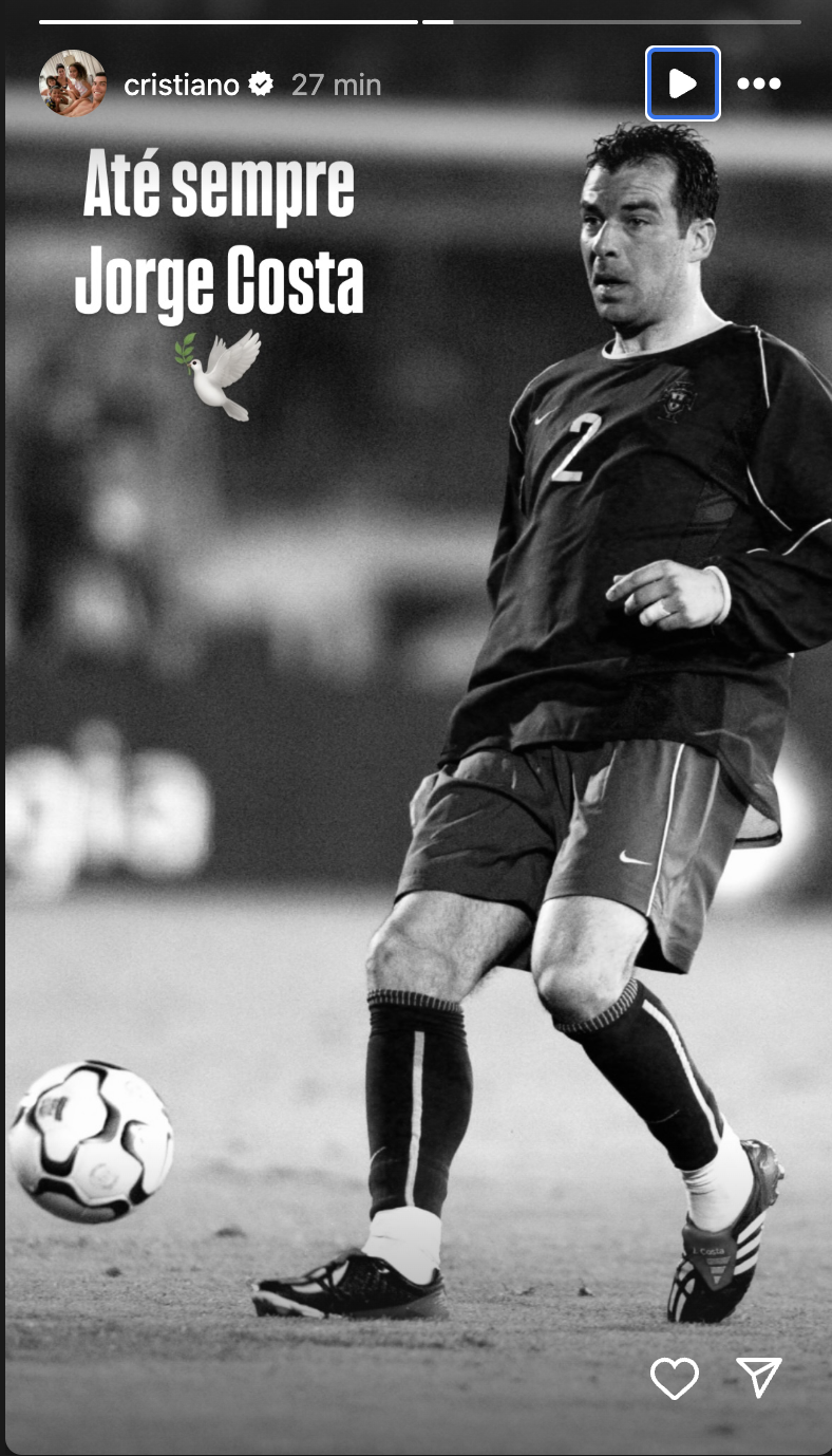 Cristiano Ronaldo homenageou o dirigente portista com uma história no Instagram.
