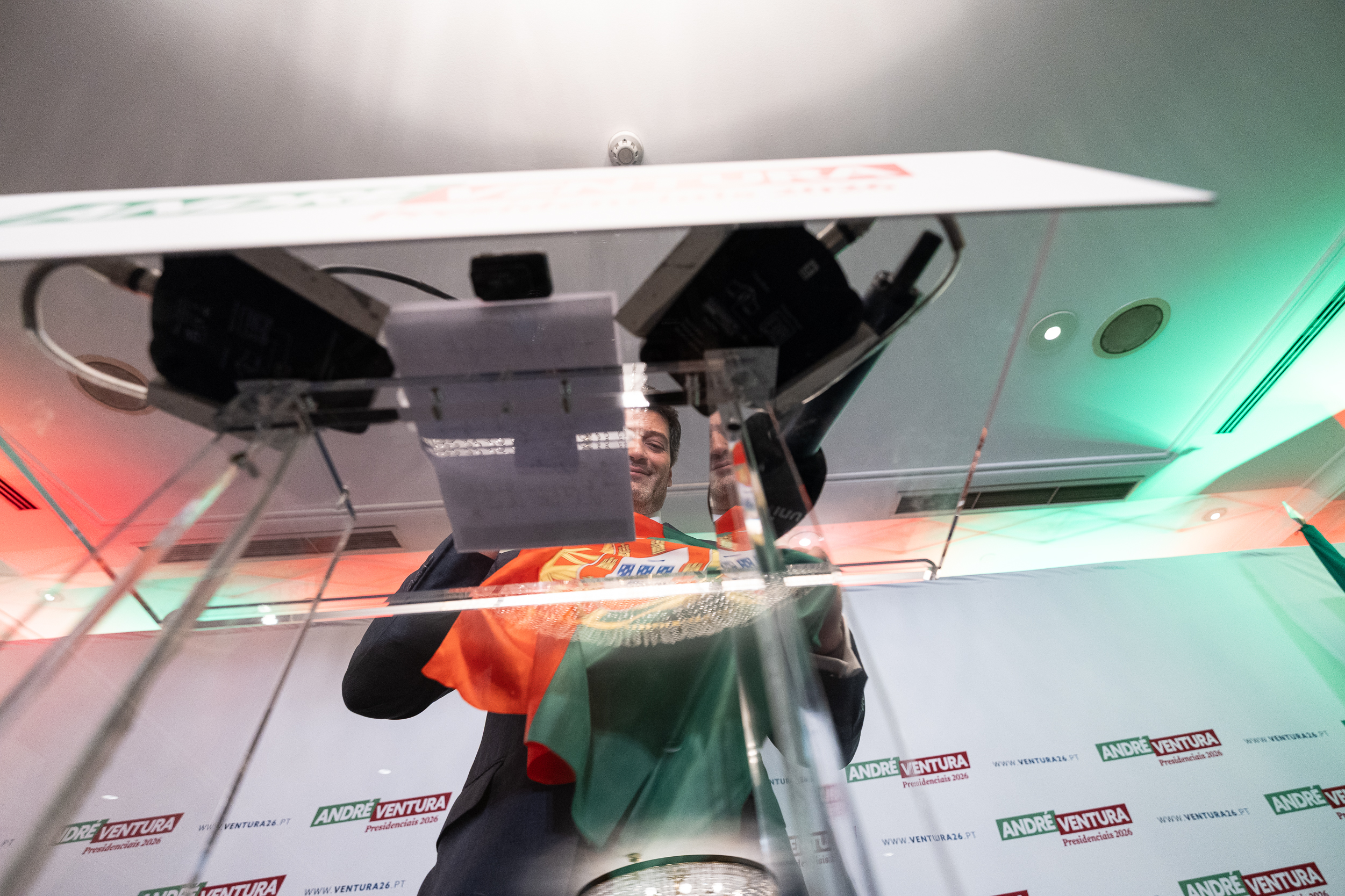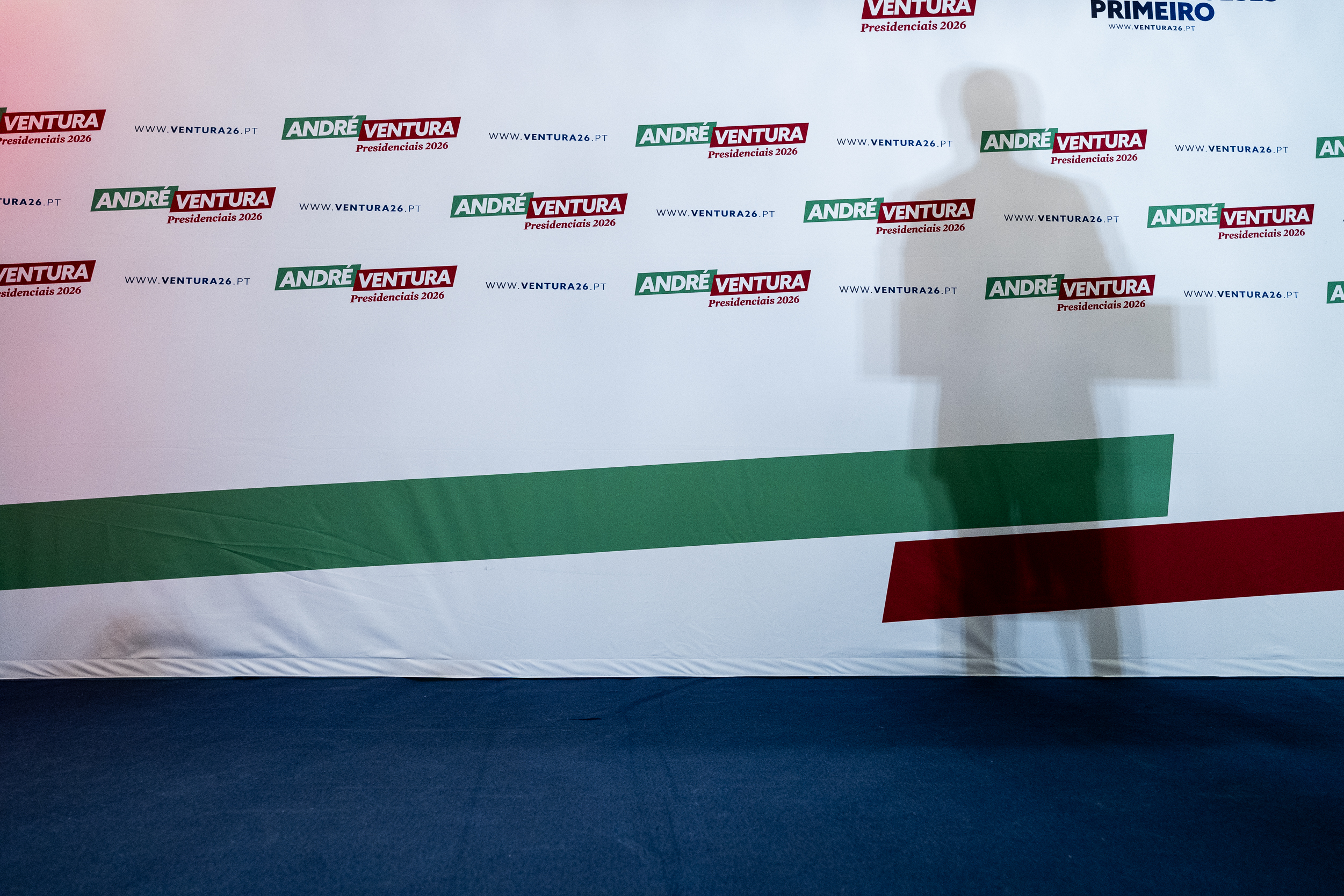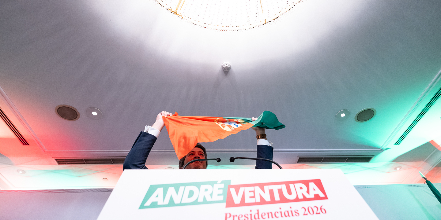 Como pano de fundo (branco), André Ventura Presidente 2026 dividia o espaço com a mensagem Portugueses Primeiro. No alto do púlpito, Ventura, sempre sorridente e esbravejante, despejou a receita de sempre, mensagens e temas que seduziram, agora, 1,3 milhões de votos.