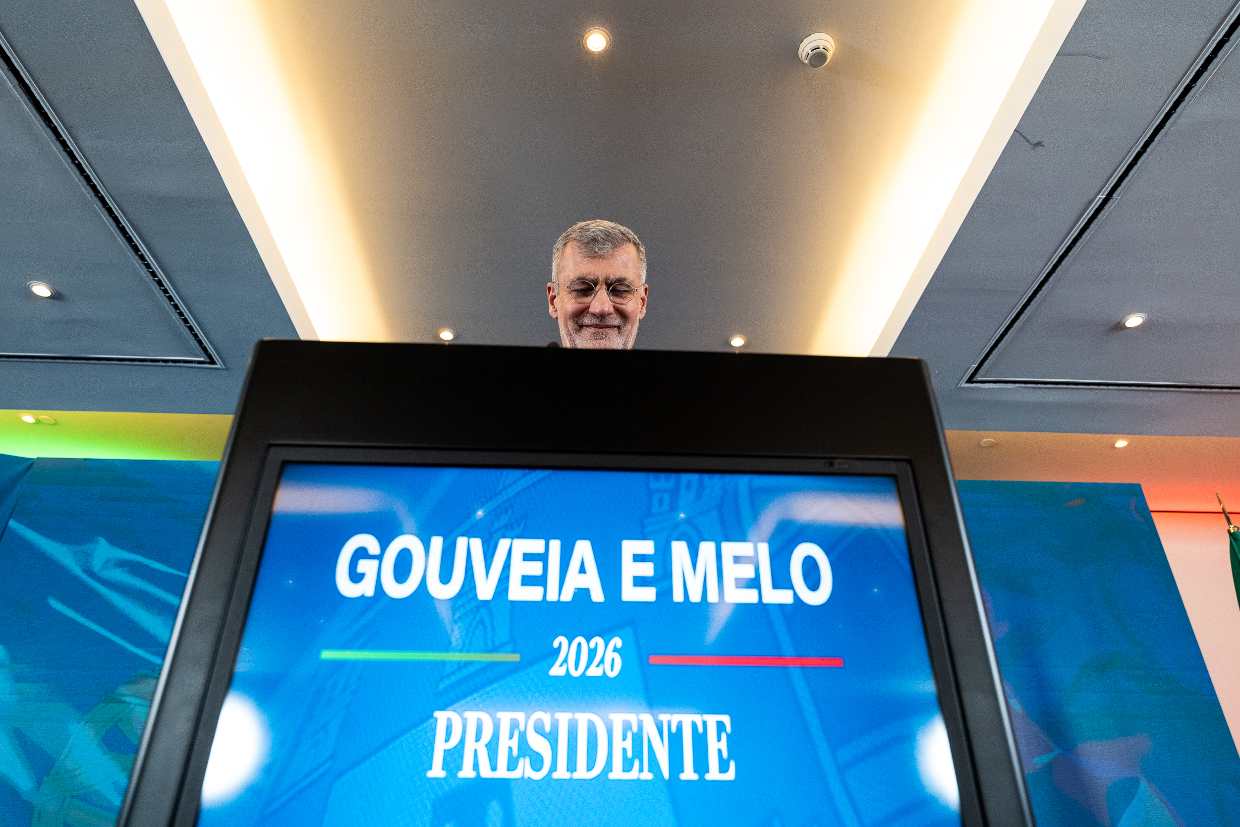 “Já não para almirante, já não para”, escutou-se, por repetidas vezes, levando Gouveia e Melo a assumir uma postura hirta e firme, atirando os ombros para o painel, também em tons de azul, humanizado com uma fotografia e a tradicional frase eleitoral “Gouveia e Melo Presidente 2026”.