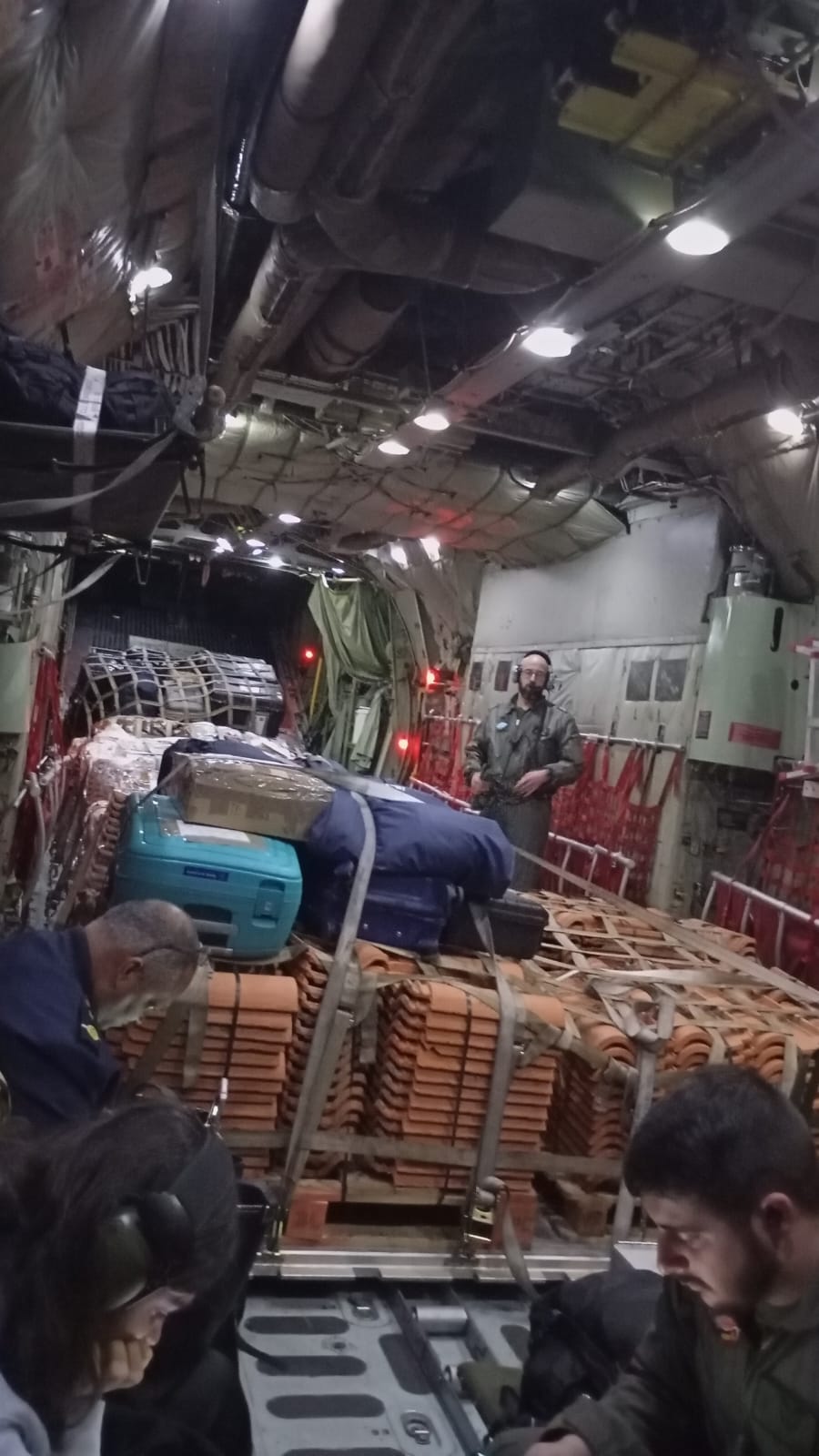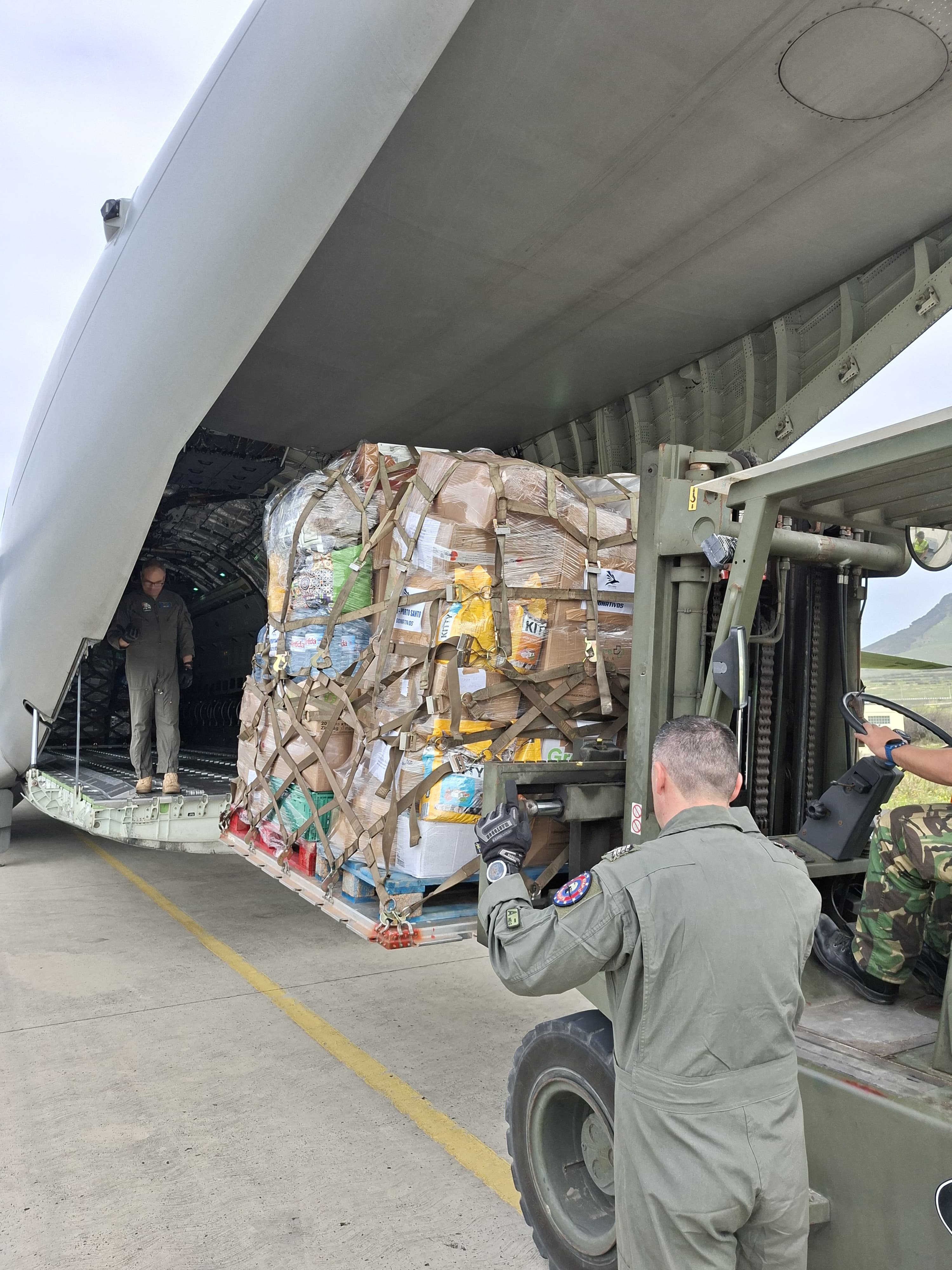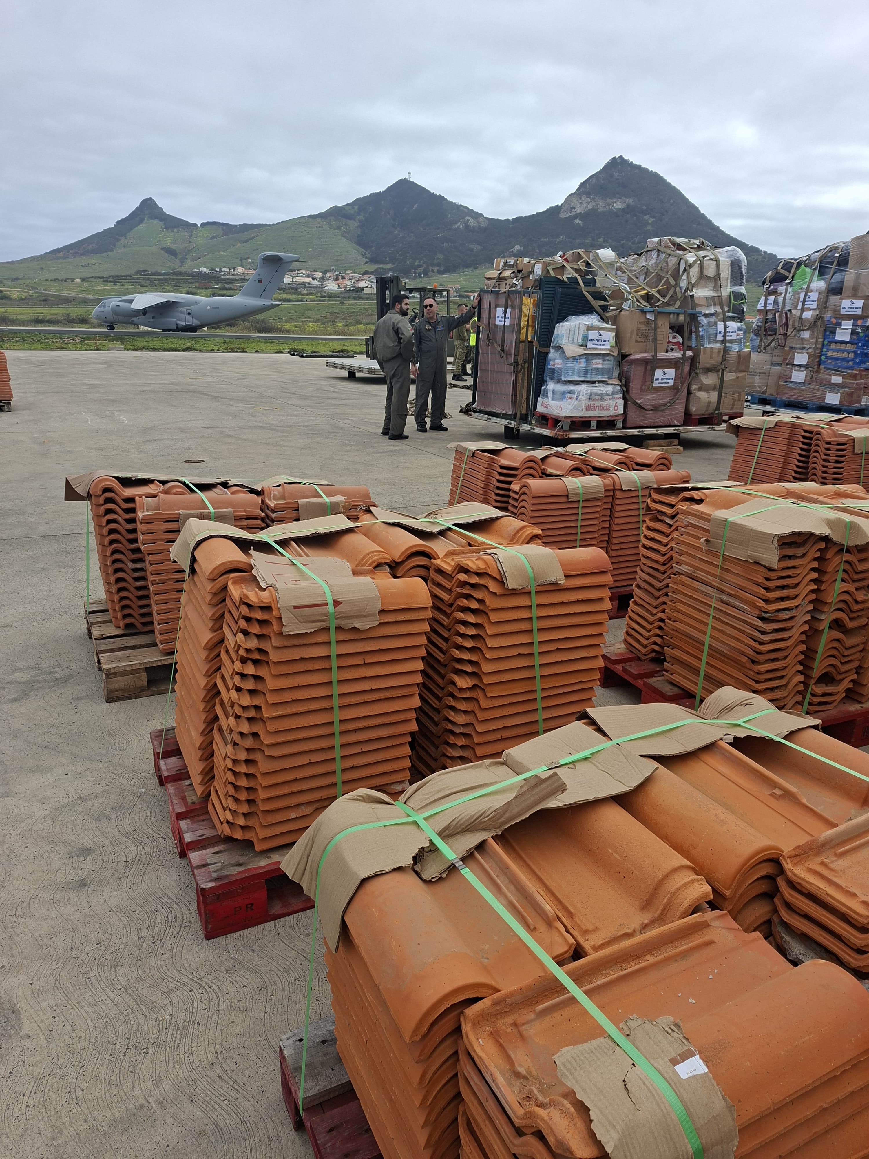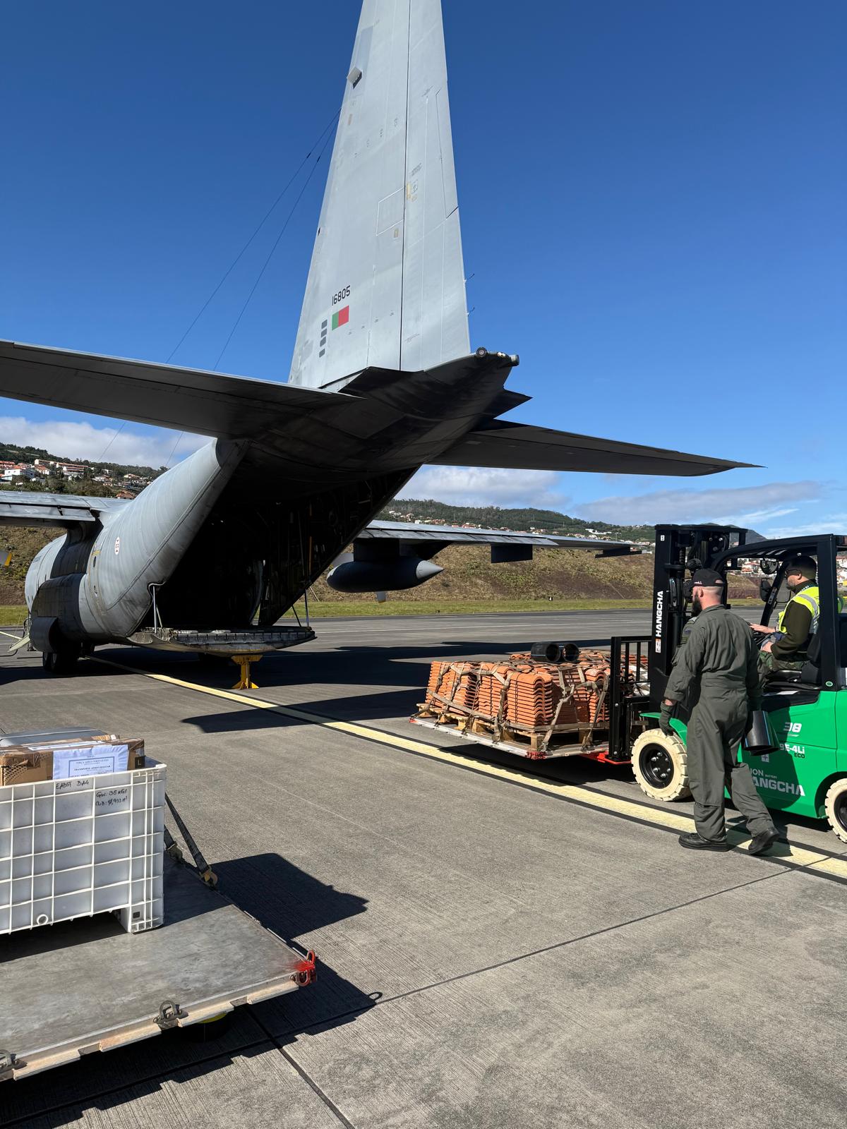 No âmbito do transporte de bens essenciais, a aeronave KC-390 descolou da Base Aérea N.º 4 com 2,2 toneladas de doações. Já o C-130H partiu da ilha da Madeira numa missão de transporte aéreo com sete toneladas de bens doados pela população.