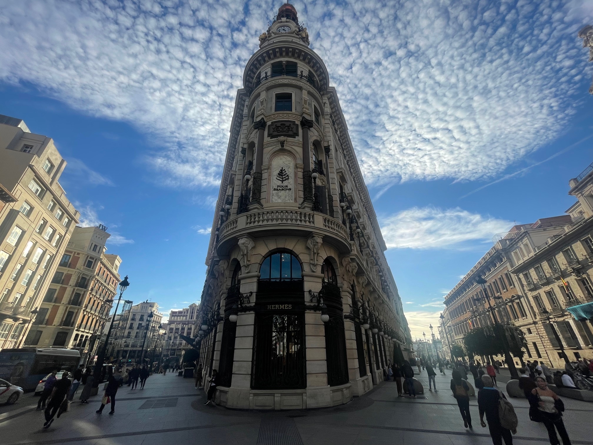 Hoje, o dinheiro, que não jaz depositado, circula entre o luxo puro. No mesmo teto coabitam a luxuosa Galeria Canalejas, abrigo de boutiques, joalharias e relojarias - Hermés, Cartier, Aquazzura, Rolex, Saint Laurent, Armani, Valentino, Zegna, Jimmy Choo, Louis Vuitton, Tom Ford –, onde muitos mortais arriscam “deixar um rim”, o luxo supremo do primeiro Four Seasons de Espanha (a suite ocupa parte do antigo Casino) e 22 residências cuja compra está ao alcance, não de uma qualquer lotaria da vida, mas da bolsa de um Ronaldo, por acaso, um dos inquilinos.