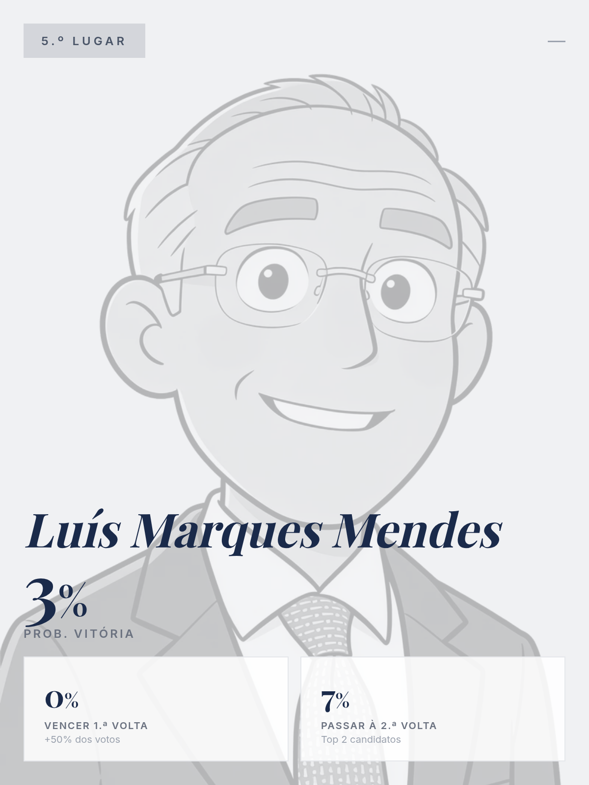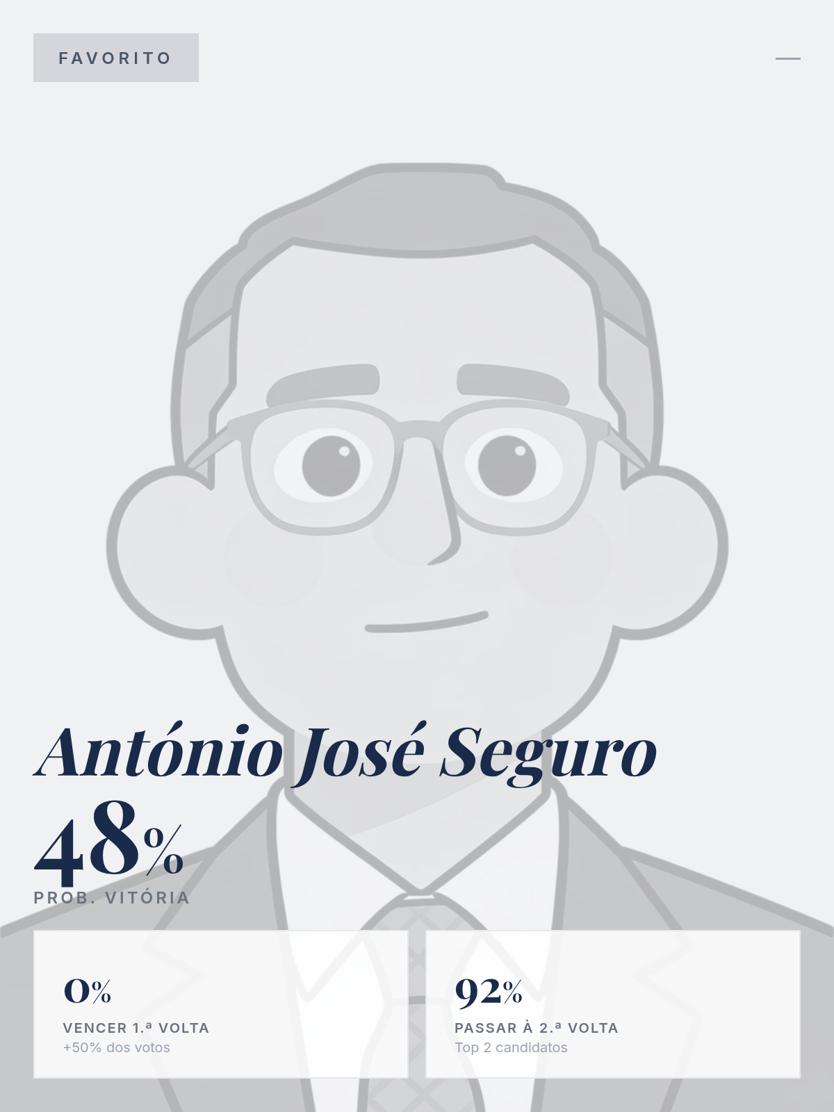 Apesar da margem estreita, Seguro mantém a maior probabilidade de vitória, estimada em 47,8% segundo modelos estatísticos. A vantagem deve-se ao momentum ascendente que o antigo líder socialista tem demonstrado nas últimas semanas, contrastando com a estagnação ou ligeiro declínio de alguns dos seus rivais.
